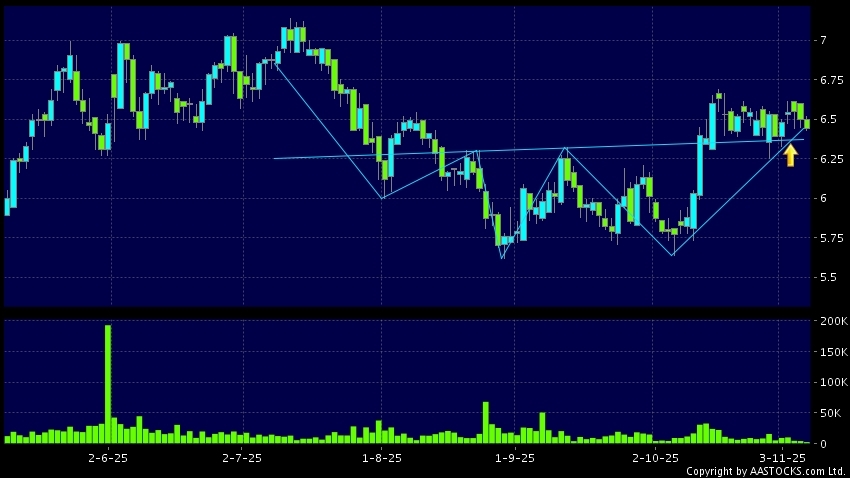 Head Shoulders bottom is a typical bullish signal, when stock price breaks the resistant level, uptrend would possibly start.(HK stocks quote is delayed for at least 15 mins.Short Selling Data as at 2025-11-07 16:25.)