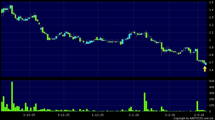 INKEVERSE(03700.HK)  +0.020 (+3.226%)   shows a trend reversal. Last printed at 0.700; rose 1.449%; on volume of 839.00K shares and turnover of $576.09K